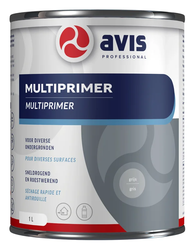 Avis Multi-Primer is een zeer goed hechtende primer voor moeilijke ondergronden waaronder verzinkt staal, zink, aluminium, hout en kunststoffen. Er ontstaat een gelijkmatige gesloten film, die na droging weersbestendig, roestwerend en slag- en stootvast is. Avis Multi-Primer is afhankelijk van de ondergrond al na ca. 4 uur overschilderbaar met vrijwel alle gangbare verven en lakken en kan door middel van kwast, roller of spuit worden aangebracht.