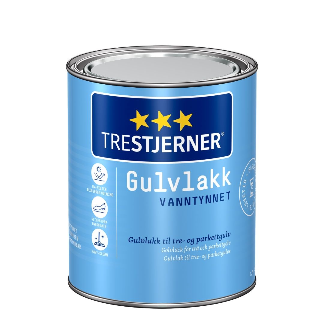 Ben jij op zoek naar een slijtvaste en chemisch resistente zijdematte blanke lak voor houten vloeren binnen? Jotun Trestjerner Gulvlakk Silkematt Waterborne is een sneldrogende, watergedragen, blanke vernis voor houten vloeren die nagenoeg reukloos is. Dit product biedt een uitstekende weerstand tegen slijtage en is goed chemisch resistent. Hij wordt veelel gebruikt voor onbehandelde, eerder behandelde en in de fabriek gelakte en/of geoliede houten vloeren. Daarnaast kan je hem ook toepassen op houten vloeren die geloogd zijn en is hij verwerkbaar op onbehandeld meubilair. Dit product is watergedragen waardoor je minder last zal ondervinden van een penetrante geur dan bij terpentine gedragen product. Dit is een professioneel product maar kan vanwege zijn gebruiksvriendelijke eigenschappen ook worden toegepast door doe-het-zelvers die gaan voor een professioneel schilderresultaat.