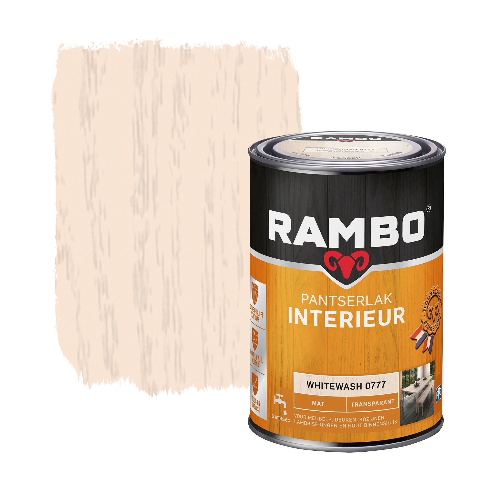 Rambo Pantserlak Interieur Transparant Mat Whitewash 0777 is geurarm en geschikt voor diverse oppervlakken in jouw interieur. Daarnaast is deze pantserlak ook geschikt voor het beschermen en eventueel op kleur brengen van vloeren. Je kan dit product toepassen op: