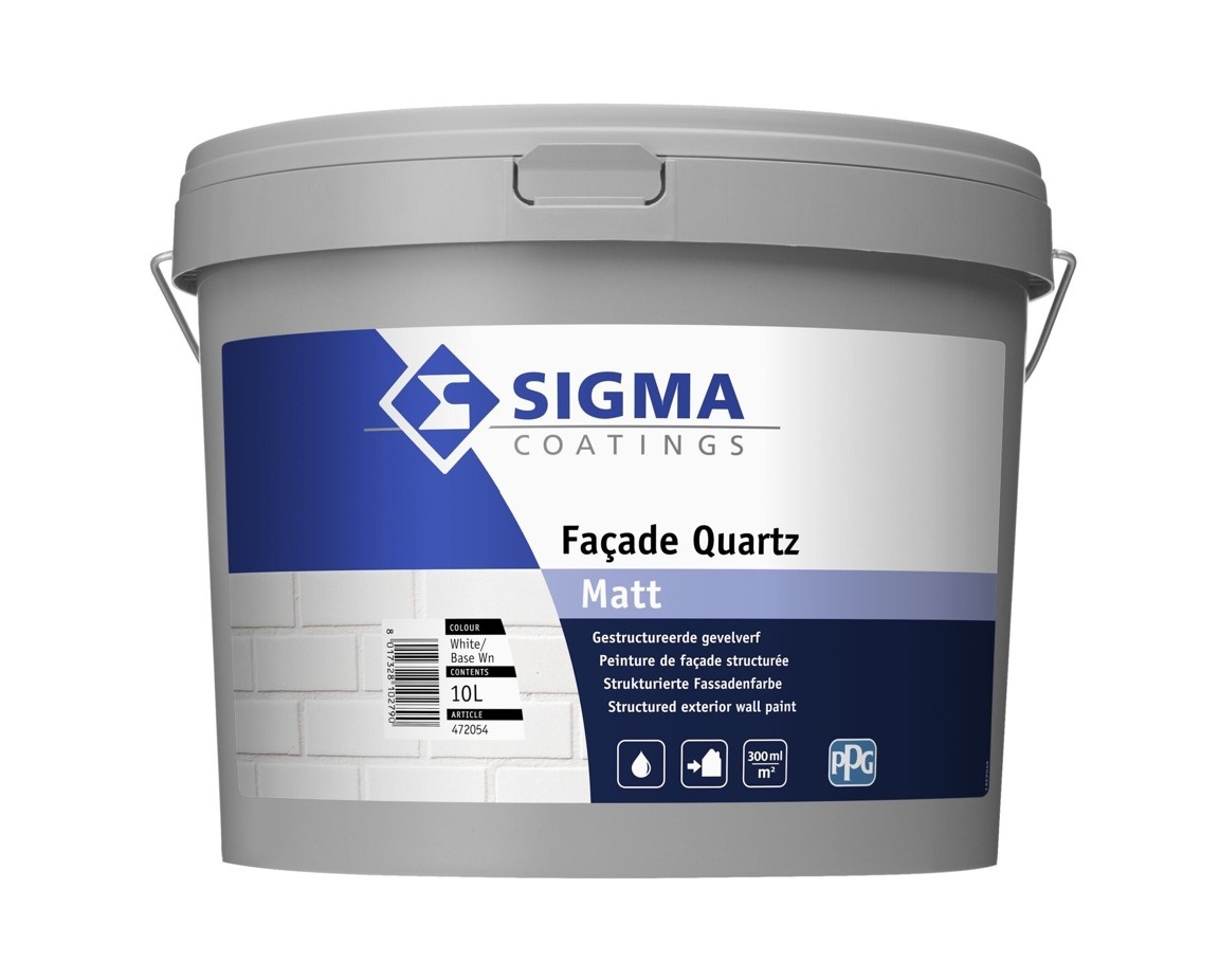 Wil jij buitengevels voorzien van een matte kwartsverf met fijnkorrelige, ronde structuur? Sigma Facade Quartz Matt is een matte gevelverf met structuur voor diverse soorten ondergrond buitenshuis. Je gebruikt deze verf voor het afwerken van beton, cellenbeton, metselwerk (baksteen en kalkzandsteen) en pleiserwerk. Daarnaast kan je dit product ook inzetten voor het overschilderen van bestaande muurverflagen op basis van kunstharsdispersie. Tot slot kan je deze kwartsverf gebruiken als grondlaag voor structuur- en sierpleisters buiten. Dankzij de elastische en vullende eigenschappen heeft deze gevelverf een hoge buitenduurzaamheid. Eenmaal behandeld is de ondergrond uitstekend regendicht en voorzien van een goede waterdampdoorlaatbaarheid. Ondanks de professionele eigenschappen kan dit product zowel door professionals als doe-het-zelvers worden gebruikt die voor een professioneel resultaat gaan.