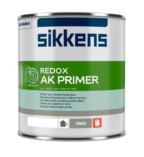 Sikkens Redox AK Primer is een roest(corrosie) werende primer op terpentine basis (alkydhars). Dit product is buitenshuis toepasbaar op diverse ondergronden en is vervolgens overschilderbaar met verf op terpentinebasis. Je gebruikt deze roestwerende primer op: