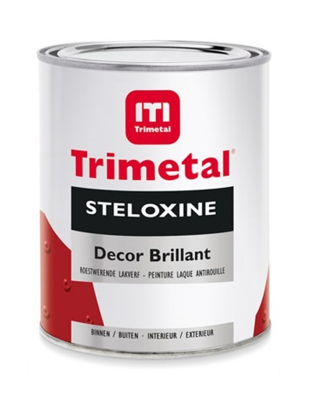 Trimetal Steloxine Decor Brillant is een anti-corrosieve, hoogglans metaalverf op basis van een alkydhars bindmiddel die zowel als primer, tussenlaag en als eindlaag in een éénpotsysteem wordt toegepast.